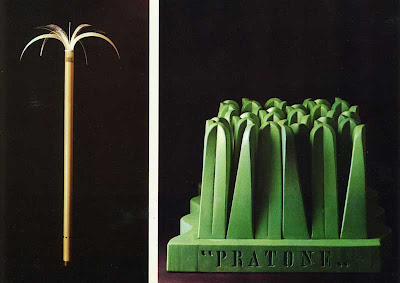 Siguiendo con el concepto de “PERVERSIONES NATURALES”, las simulaciones espaciales de entornos naturales, los sistemas de control e incluso los intercambios de información entre “hombre y naturaleza” fueron siendo poco a poco desplazadas por simulaciones más básicas formales relacionadas con el ámbito del mobiliario (prados a modo de alfombras, nubes y soles como luminarias o palmeras lámpara) (muy cachondas eso sí). En este sentido destacan estas piezas exhibidas en la expo del 72 del MOMA “The new domestic landscapes”, comisariada por Emilio Ambasz (de la que ya he hablado en post anteriores). Dejo aquí algunas de las más interesantes: